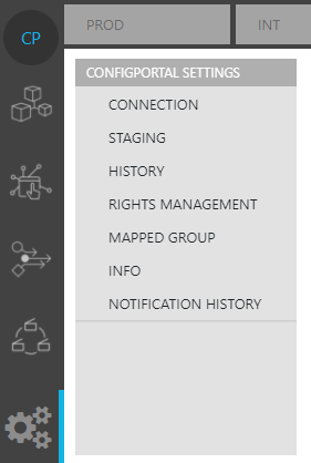 The ConfigPortal Settings Module, accessible by clicking on the "Cogs" icon on the Main Navigation Bar, offers users the possibility of specifying options that affect ConfigPortal as a whole as well as the functions provided by it.