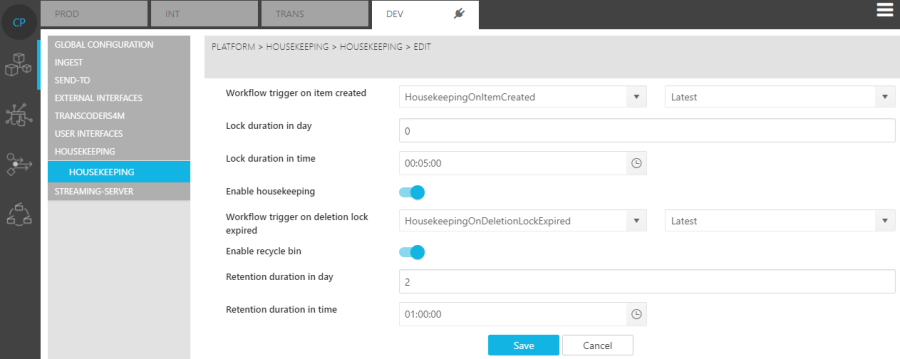 Users can toggle whether or not the housekeeping workflow is triggered immediately after items lose their deletion lock status.