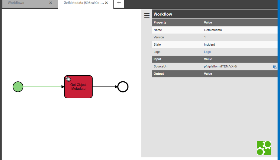 Should the administrator be interested in a particular workflow’s design they are able to select the desired workflow and open a dedicated window in which a BPMN diagram is displayed along with a dynamic table with parameters for every element.