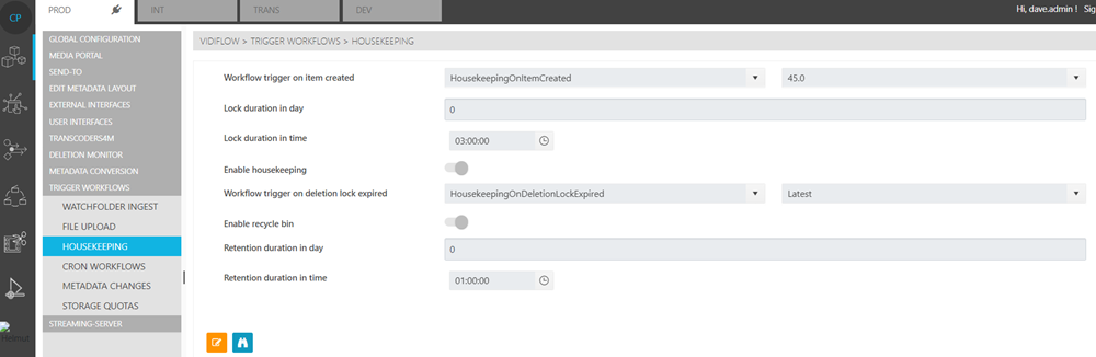 Under the Housekeeping Page, users are given the opportunity to determine how VidiFlow behaves with regards to deletion logic and behavior at a configuration level. Users are able to determine which workflows are triggered, and what time factor is attributed to them.