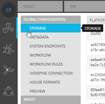 Select the desired Product Config Module. Within the Configuration Bar, choose the "GLOBAL CONFIGURATION" option. The Configuration Bar will expand offering the "STORAGE" option.