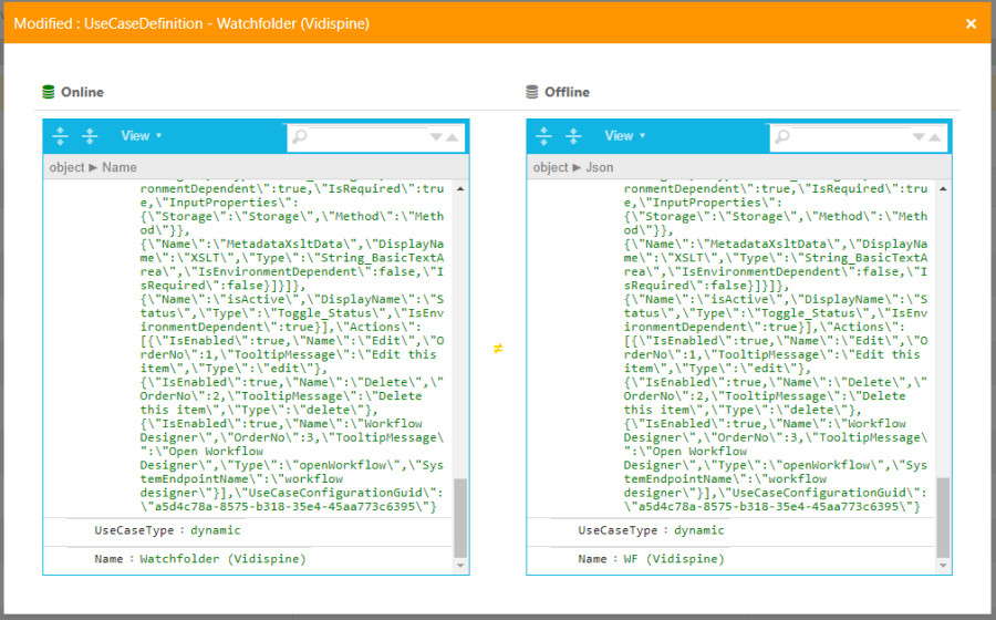 If a change is classified as having modified a current, "Online", configuration, both the current and new, "Offline" configuration are displayed side by side. This makes it considerably easier for users to be able to compare the two.