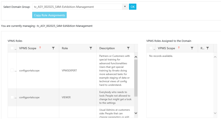 Having selected a group from the dropdown and clicked the "OK" button will make the role assignment area visible again, where before it was greyed out.
