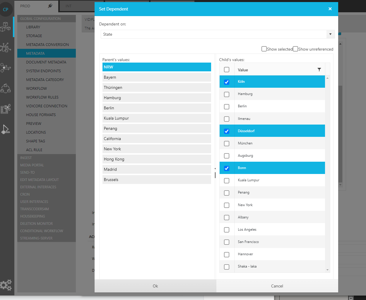 Datasets (dependent enums) also support the definition of multiple child-dependencies. Under Metadata Field, users are able to set several metadata fields as dependent to a parent field.