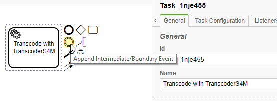 The next example illustrates the usage of boundary events using the task "Transcode with Transcoder S4M".