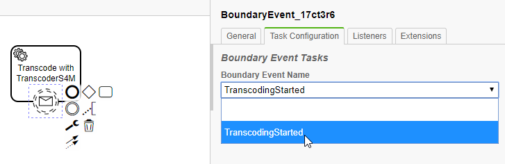 The next example illustrates the usage of boundary events using the task "Transcode with Transcoder S4M".