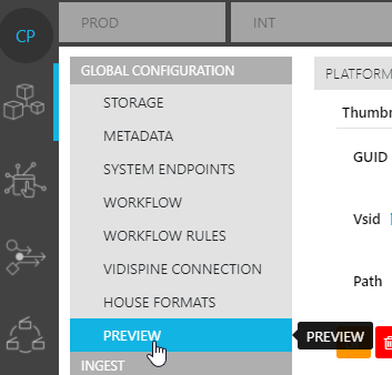 This Global Configuration Page is where users are able to assign and edit a single, dedicated storage responsible for providing thumbnail previews of for video media.