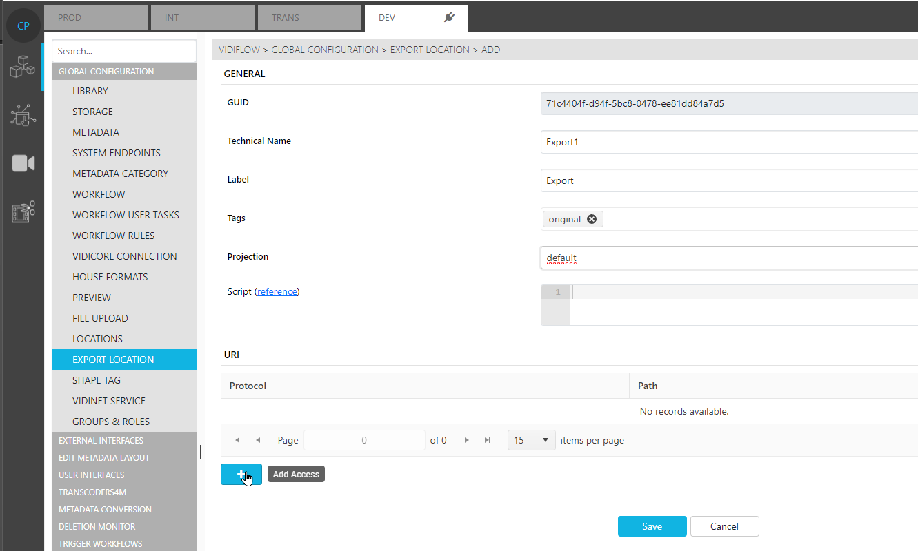 In the use case configuration it is possible to add, modify, and delete different Export Locations: