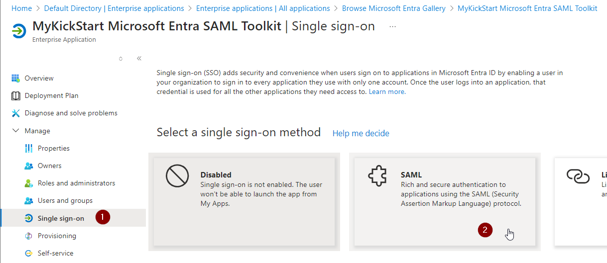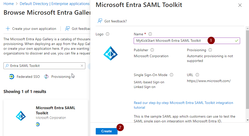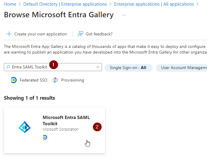 Search for “Entra SAML Toolkit” and select “Microsoft Entra SAML Toolkit”