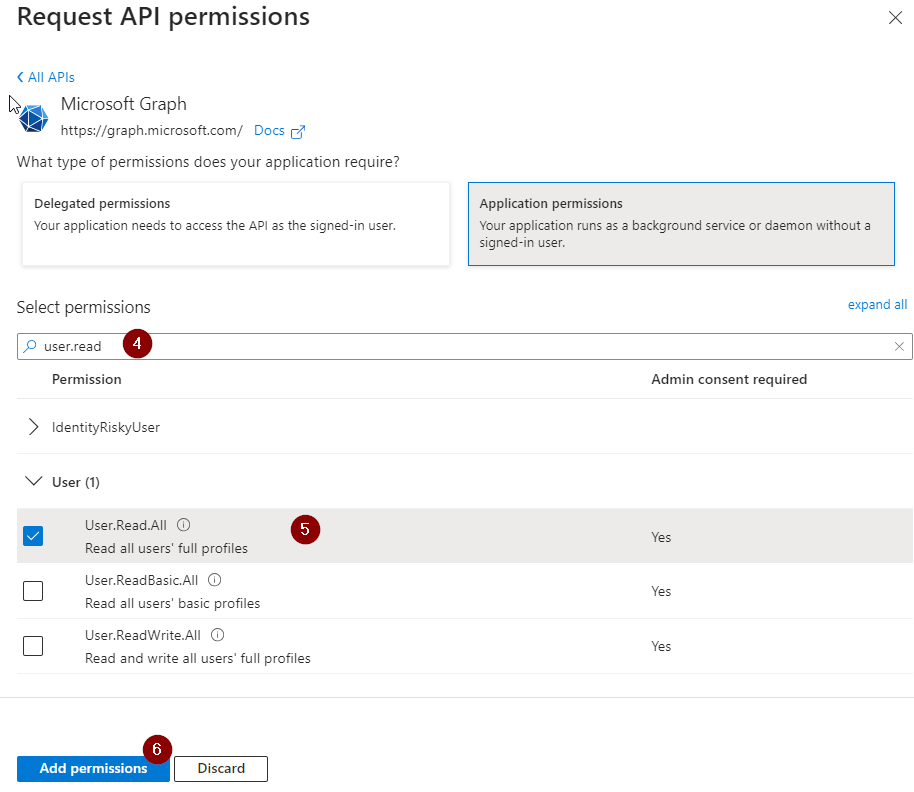 Select “Application permissions”