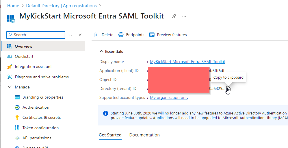 Get the Client ID from ‘Application (client) ID’