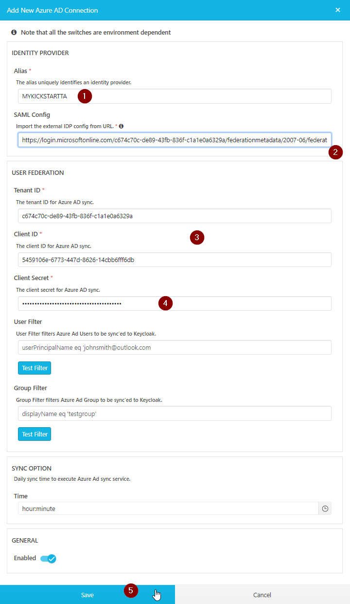 The following is the Azure Enterprise App configurations used for Keycloak User Federation usage via client-credentials Authentication Flow: