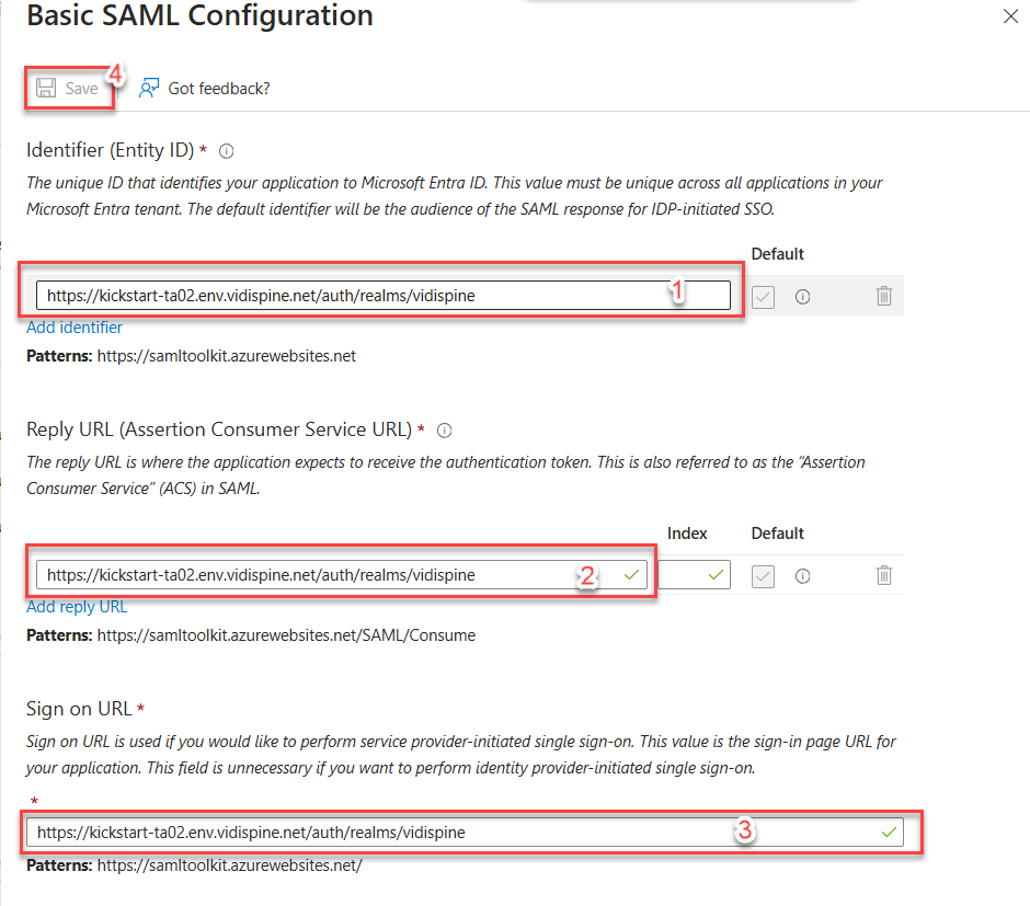 Edit the “Basic SAML Configuration”