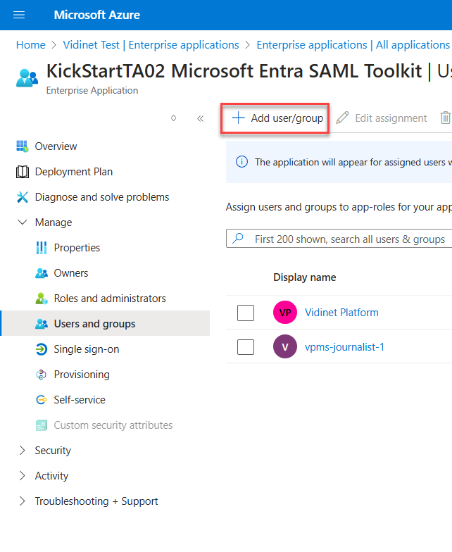 Click “Assign users and groups”