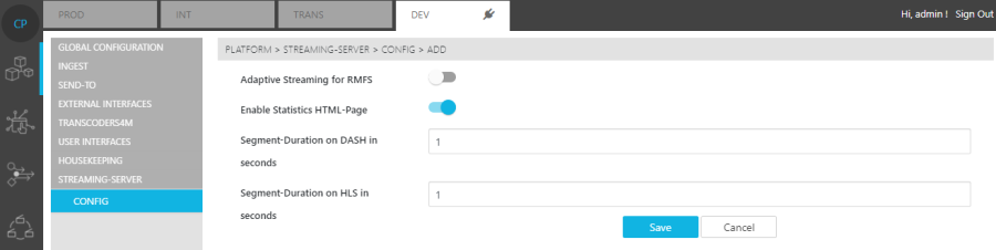 Segment Duration on HLS in seconds: Duration of segment using HLS streaming protocol.