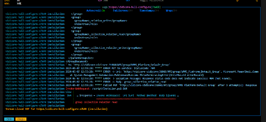 Solution: Scale down vidicore to 0 and than the DB problems do no longer exist