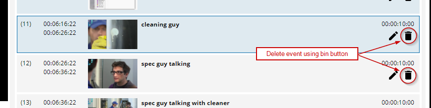 Events can be easily deleted by pressing the bin-icon at the particular event.