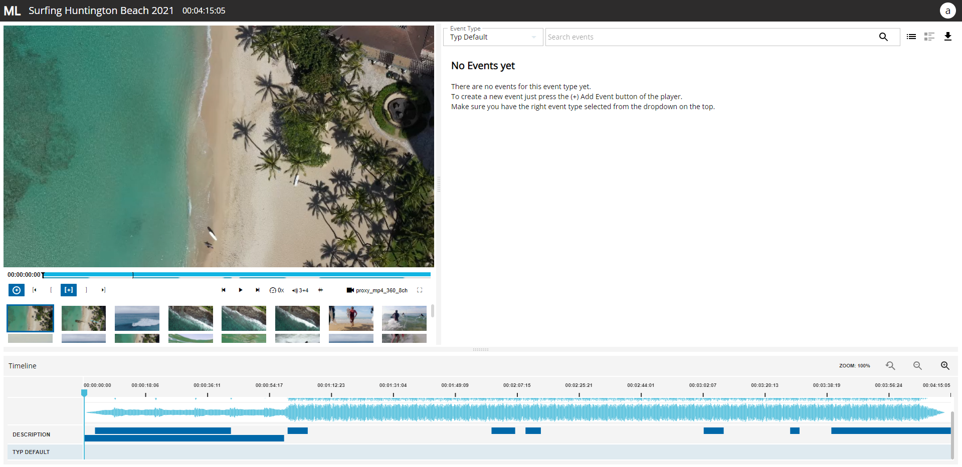 Now you can browse through the file using the player. When MediaLogger is opened on an asset that does not have any events yet, it will look like this: