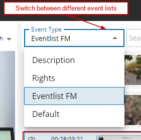 On the left hand side of the header you can switch between different event list types, e.g. there might be a descriptive event list as well as an event list for capturing the content rights. Each event list type has a different purpose and thus could have different metadata fields. However it depends on the system design if there are multiple event lists and how they are labelled.