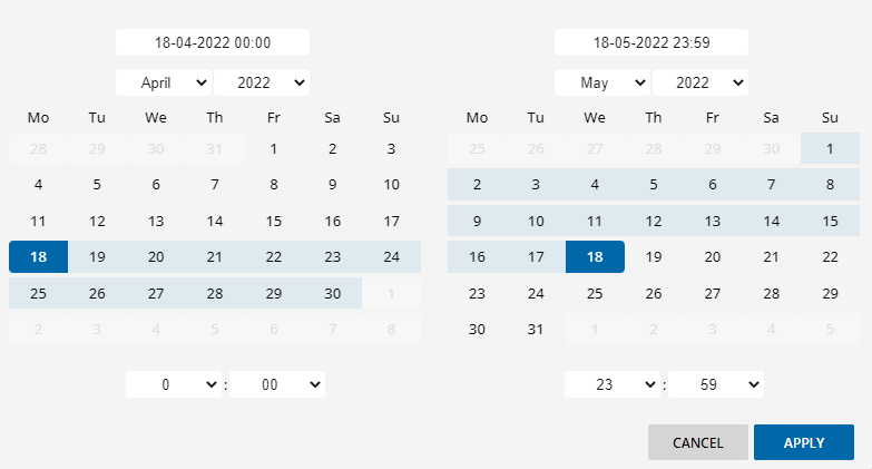 The control of the date-range filter for the filters has been updated, allowing for a quicker selection of date/time range.