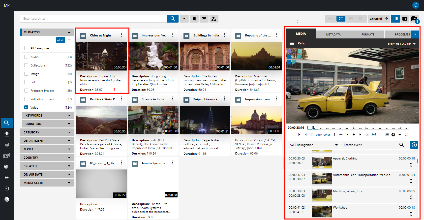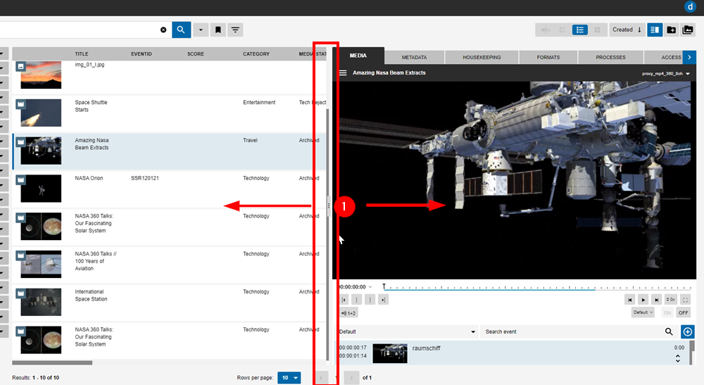 By clicking on the search result’s thumbnail (1), the Preview Panel is extended from the right-hand side (2).