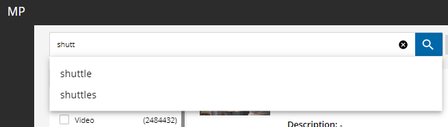 Text can be autocompleted against the search index. Assuming you intend to search “shuttle”, you can just type “shutt” and based on the existing and indexed values, options are displayed below.