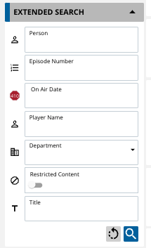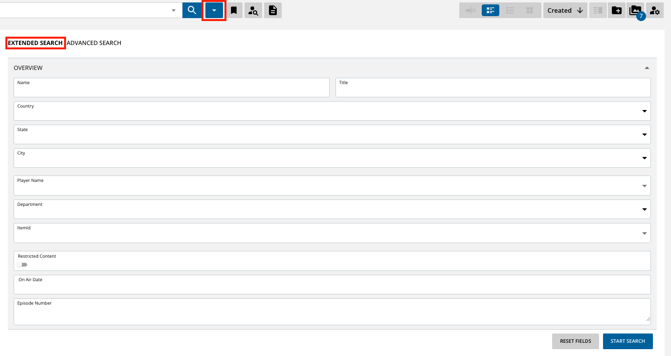 Two options exist to perform a search when combining various different fields. This is known as Extended Search. It is important to note that only one of the views can be selected, but not both at the same time. If a metadata field is already selected for the filter area, it will be automatically removed from the Extended Search Area to avoid confusion on which fields the users search in.