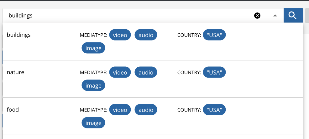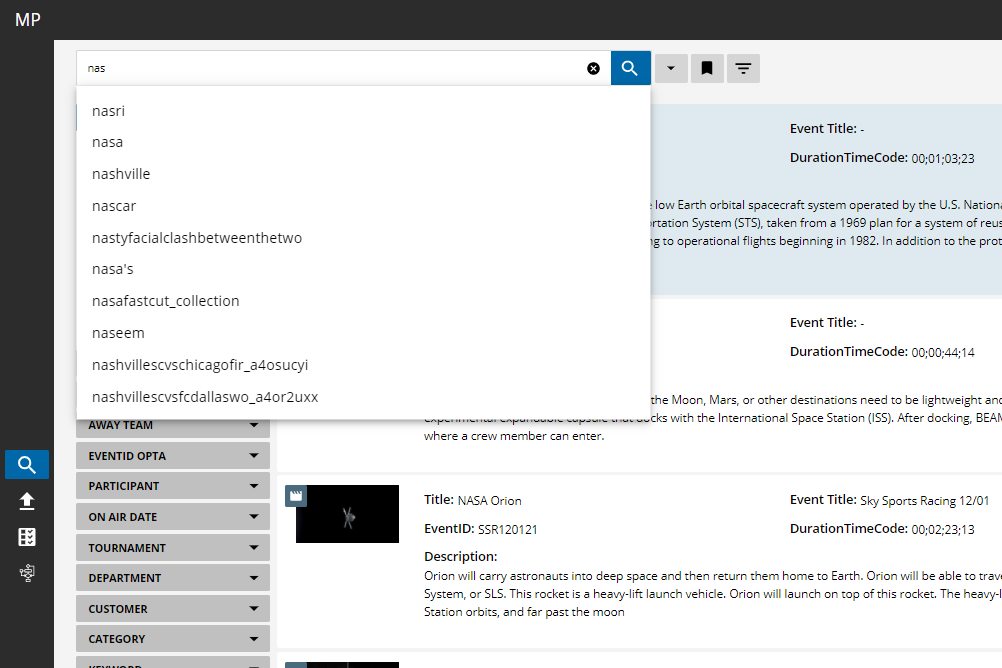 You can search across various objects types which are available on your system. These types can be items such as video, audio, images, data files or documents. They can also be collections, editing projects or placeholders.