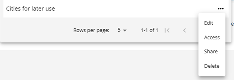 The saved searches provide options for editing the existing search, manage the access for groups or users, and deletion.
