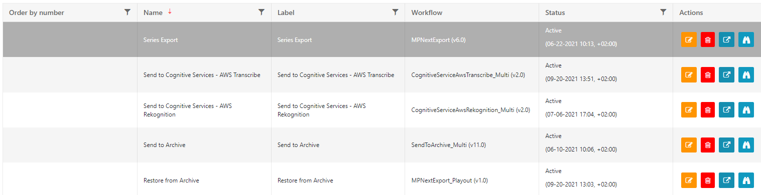 Order by number: Manually set an order as a full number (1,2,3 and follows). Smallest number will be on top. If administrator assigns same number twice it will show the latest created workflow first.