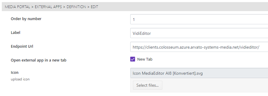 Open external app in a new tab: By default the app will be opened in an i-frame within the MediaPortal. If this option is selected the app will be opened in a new browser tab.