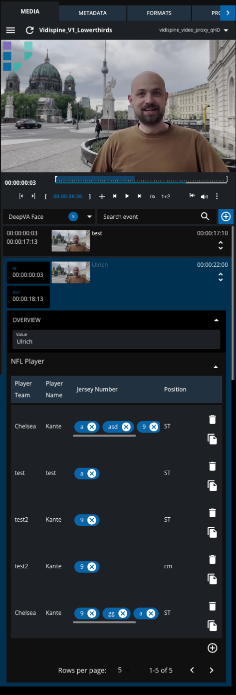 In the context of managing events and their associated players, users require the capability to configure and display compound metadata for multiple players involved in a specific event. This feature enables the configuration and presentation of compound metadata as a table within the Segments view.