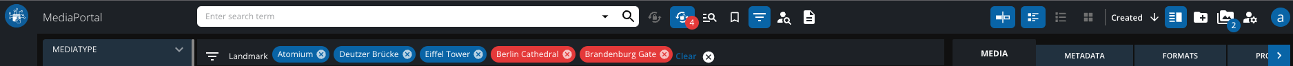 Users often need the ability to refine their search results by applying filters or facets. One common requirement is to provide an option to exclude specific values from search results. For more information, see Filters in MediaPortal | Negative-Filter .