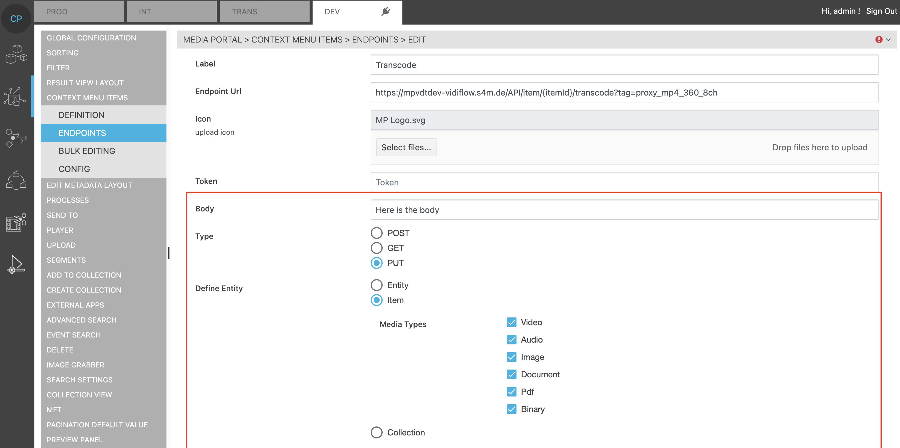 Create generic POST or PUT Calls. The body can be added to the call as well. The token will by default use the MediaPortal token. Another token can be added as static value.