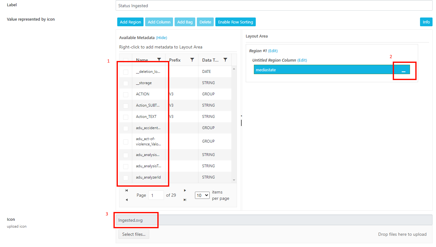 Selecting any of these pages will open the current layout for each of views and allow for users to specify which metadata fields are expressed.