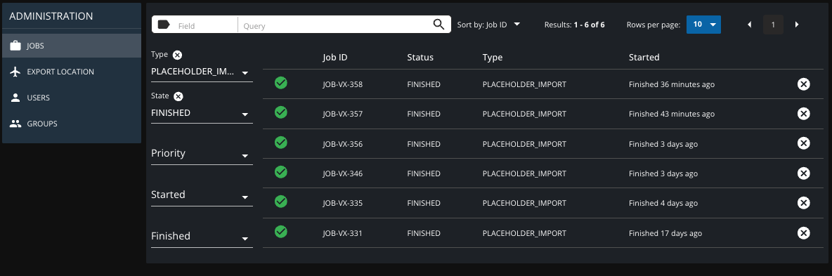 • Filter Jobs: Filter jobs based on status, type, and time period.