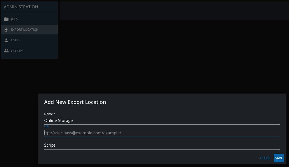 • Add New Export Target: Create a new export target by specifying details such as target name, destination path, and connection settings.