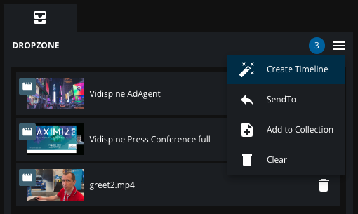 The function will then create a new Timeline in the VidiEditor Project. Attaching the items in the given order of the DropZone