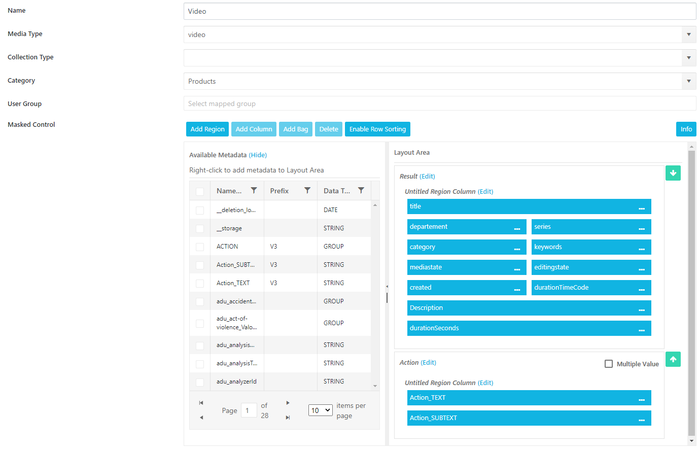 Selecting any of these pages will open the current layout for each of views and allow for users to specify which metadata fields are expressed.