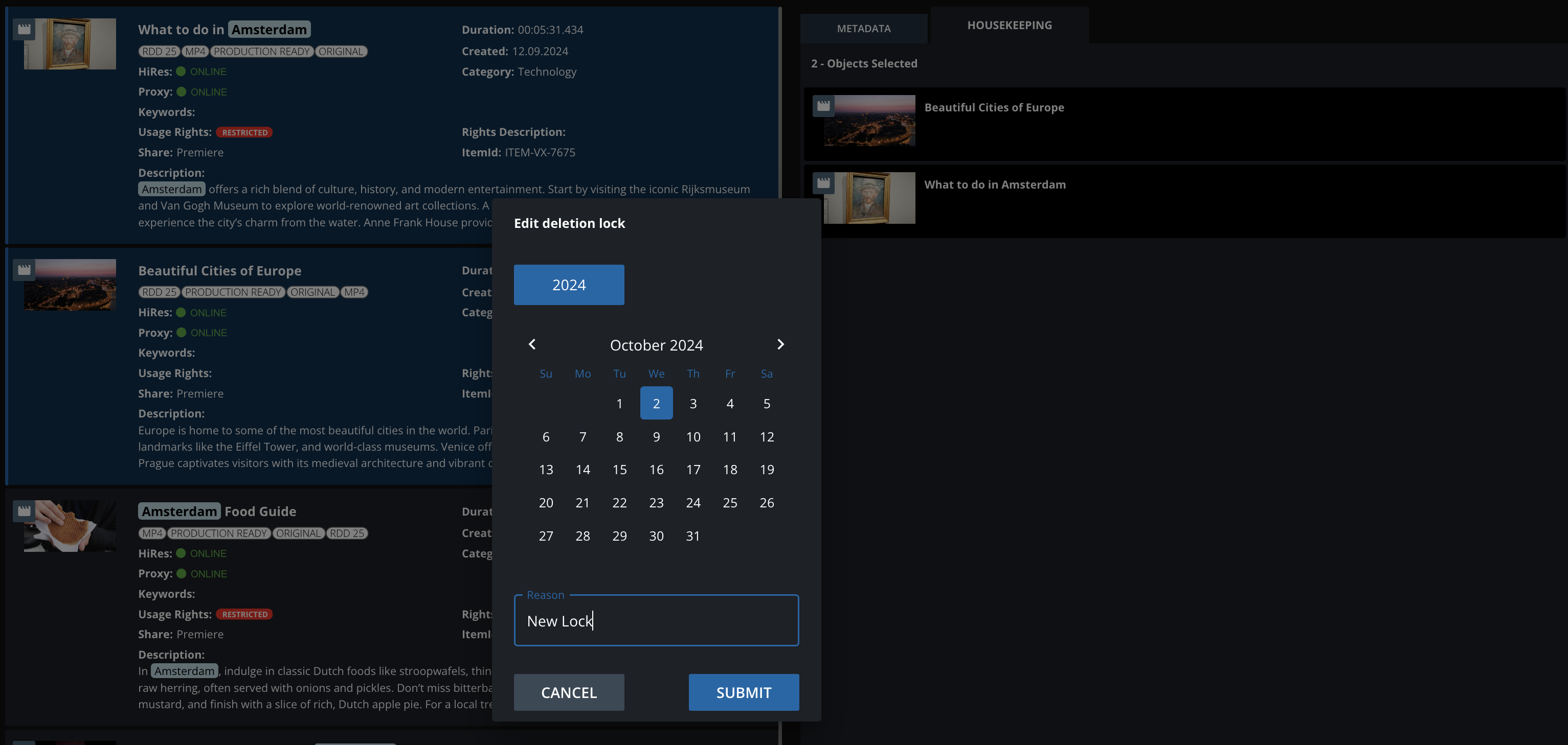 MediaPortal now supports the ability to select multiple items or collections and apply deletion locks to all selected assets simultaneously. This improves efficiency when managing deletion restrictions across multiple media items.