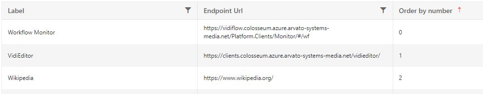 Define the Links, display order and Endpoints of the external applications available on the left navigation bar.