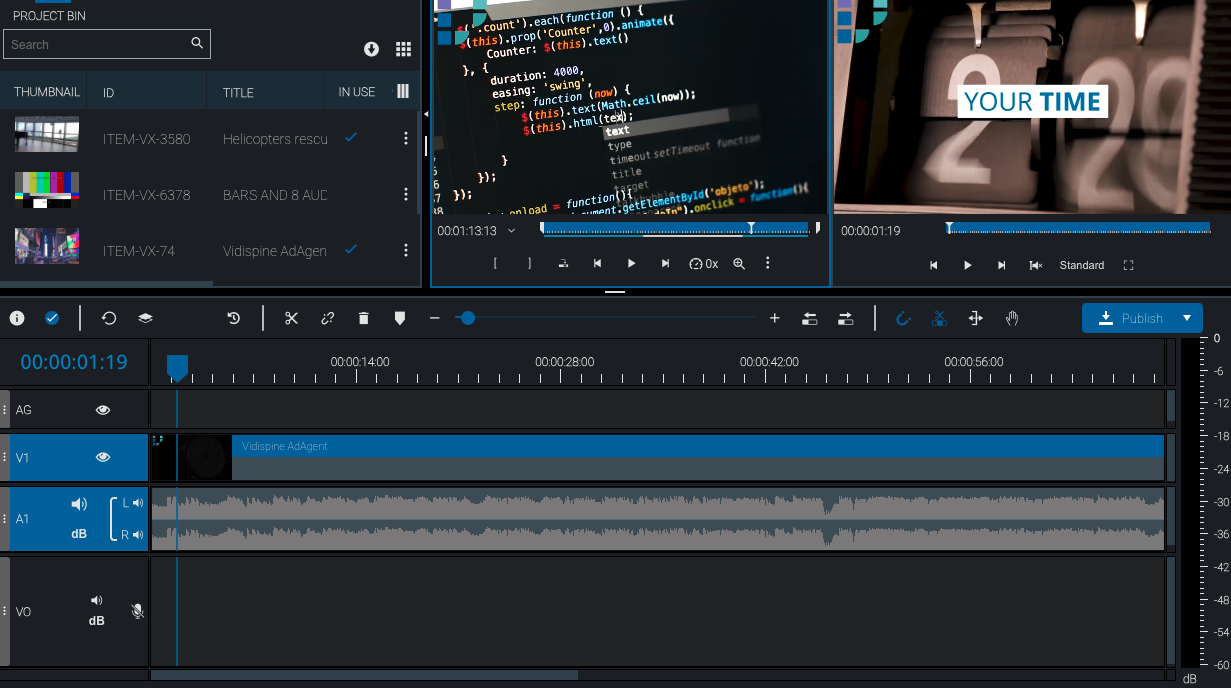 The function will then create a new Timeline in the VidiEditor Project. Attaching the items in the given order of the DropZone