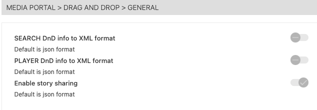 It is possible to differentiate the payload on Drag & Drop fields by JSON and XML depending on the context. These can be interactions towards NRCS, Origin, VidiEditor or other Applications: