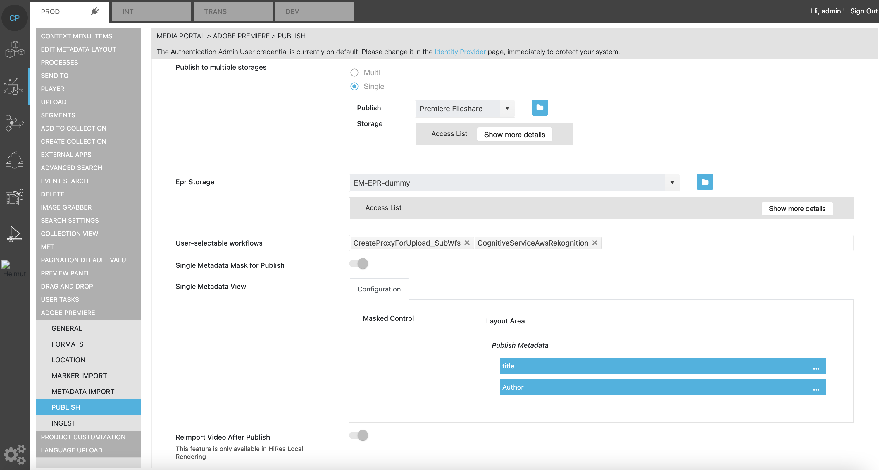 Epr Storage: Source storage for the local Adobe Media Encoder to pick the publish settings. It needs read access to the configured storage.