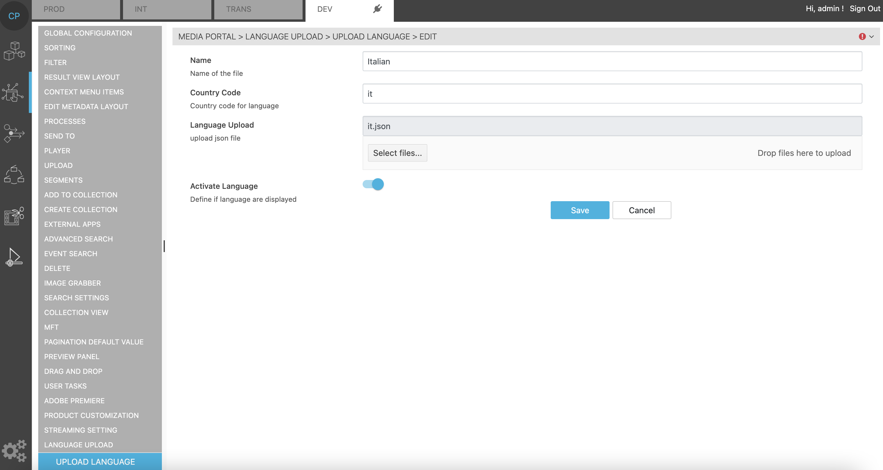 Upload additional language mapping, which will then be added as an option to the default languages English and German.
