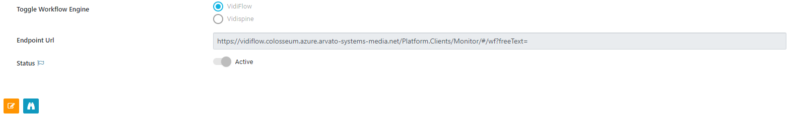 For VidiFlow add the URL of the Monitor, this will then enable the function to directly access the VidiFlow Monitor as option in the process view.