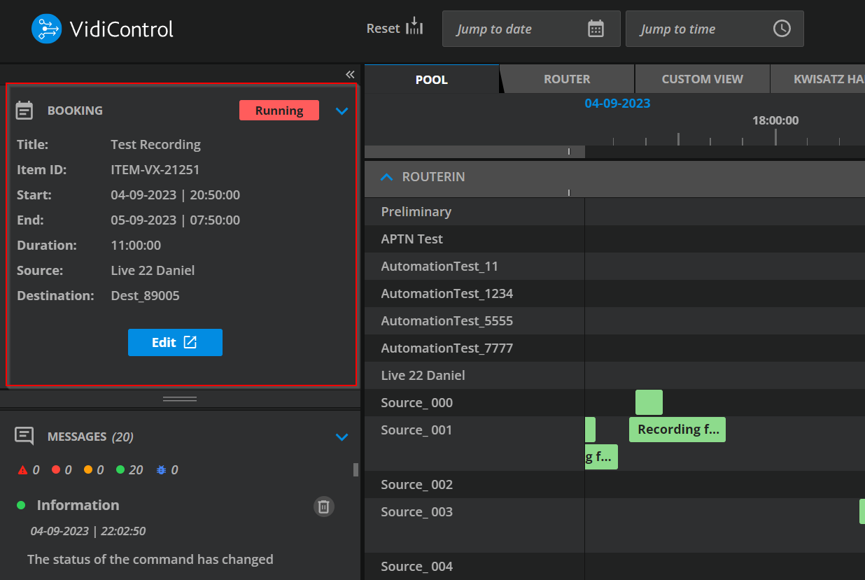 Each message is linked to their respective booking component. When viewing message in the notifications area, selecting and clicking on the message title will have the user jump to the respective component on the timeline.