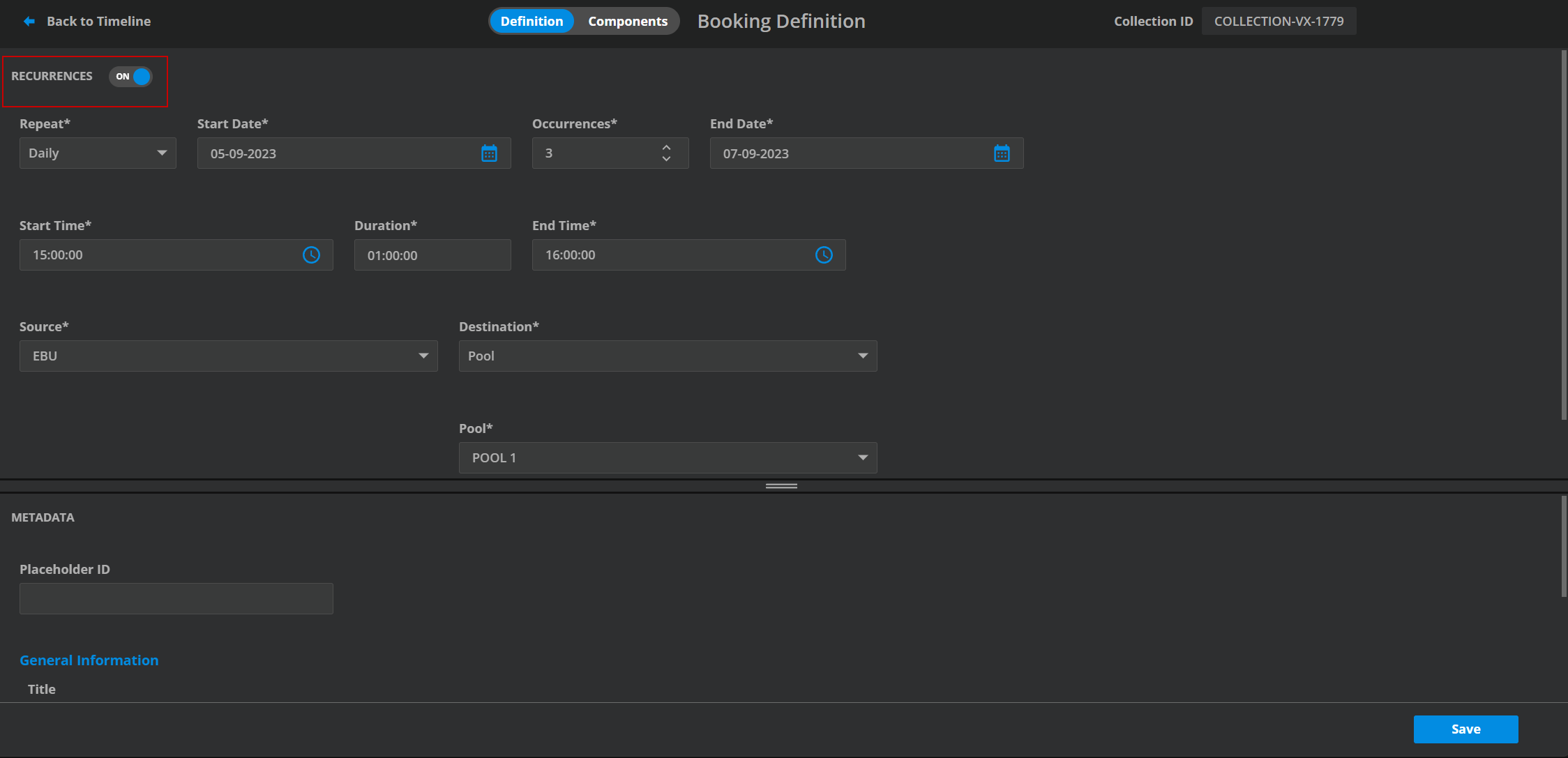 For every Booking Definition VidiControl will create a Collection. VidiControl will set the metadata V3_CollectionType for Collections in VidiCore at this collection.