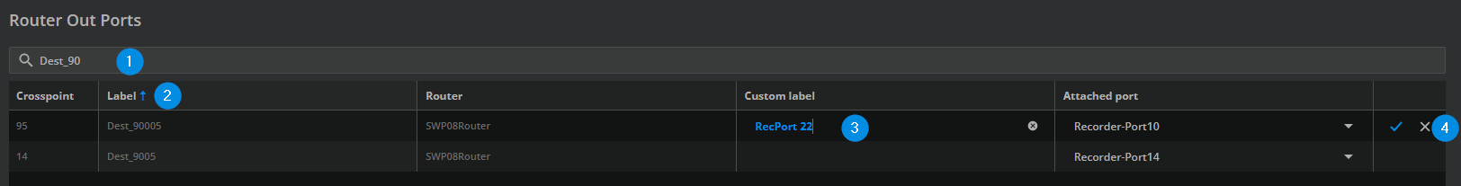 Example Table with (1) Searching and Filtering, (2) Sorting, (3 & 4) In-Line Editing, (4) Action column