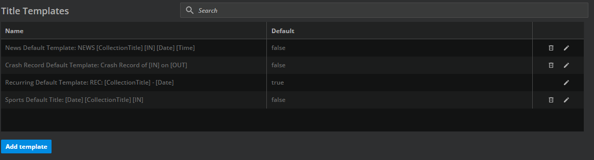 By clicking the trash bin icon, a template can be deleted. It is not possible, to delete a template that is configured as a default.
